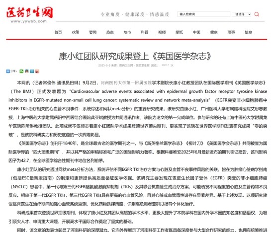 【河南日报、医药卫生网、河南青年网、丁香学术】等媒体报道我校第一附属医院研究成果登上《英国医学杂志》